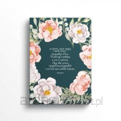 Na okładce znajduje się motyw barwnych kwiatów w odcieniach różu, pomarańczy i żółci. Zastosowanie złocenia (hot-stamping) podkreśla najważniejsze słowa wersetu, nadając całości elegancki i wyjątkowy charakter.