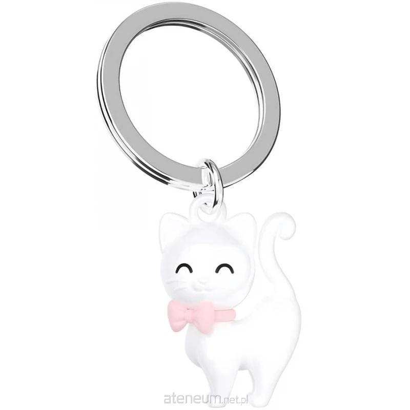 Brelok breloczek do kluczy biały kot kotek z różową kokardką belgijskiej marki Metalmorphose.