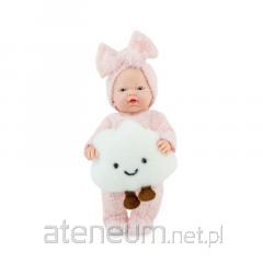 Niewielki, 35 cm, uroczy bobas w ślicznej biało-różowej sweterkowej piżamce i opasce to wyjątkowa wersja popularnego modelu Betty, zaprojektowanego i ręcznie wykonanego w Hiszpanii w firmie Marina & Pau. W komplecie znajduje się ciepły przytulany, miękki śpiworek z pluszowymi pomponikami.