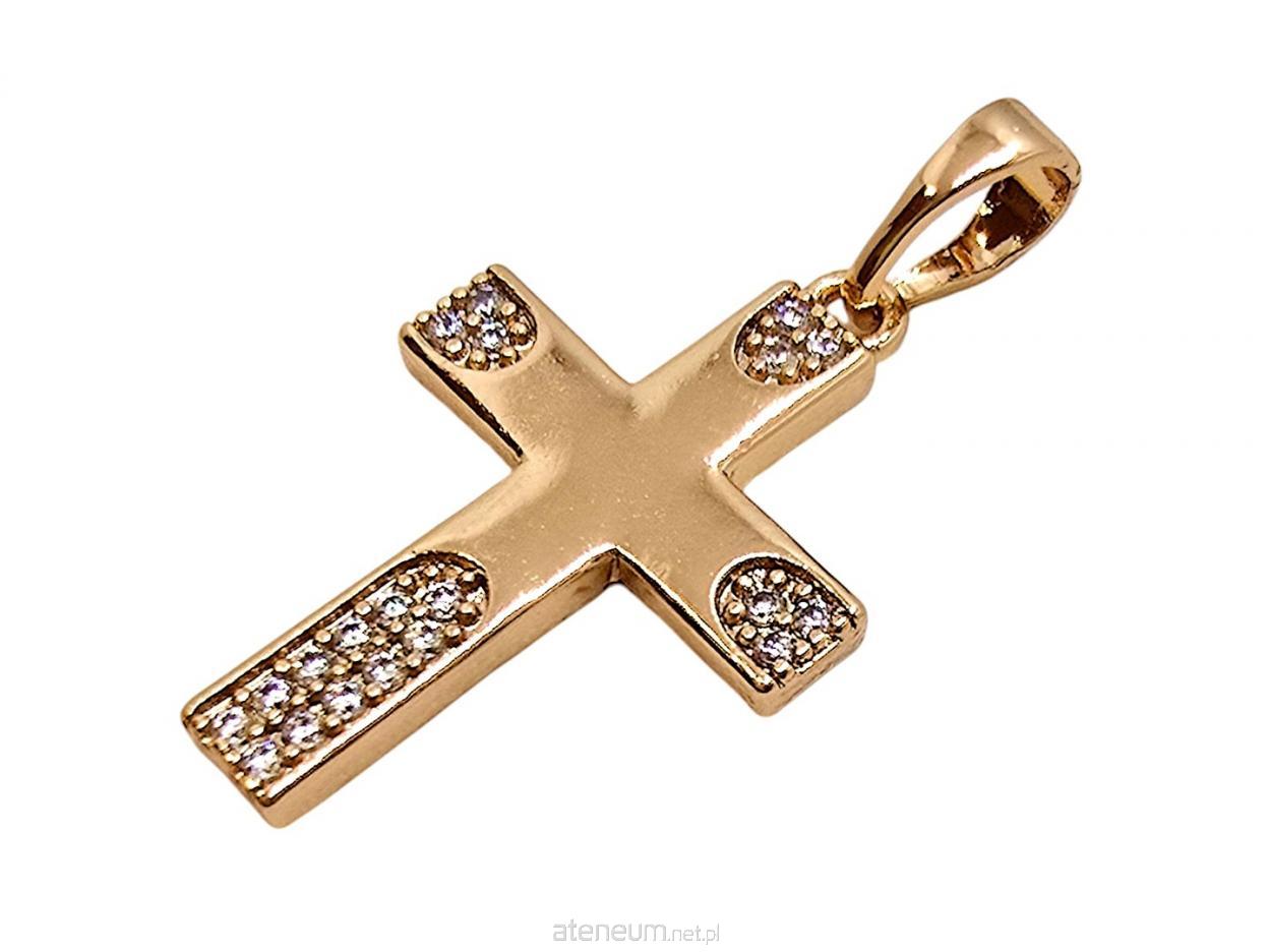Zdobienie zostało wykonane z niezwykłą precyzją: trzy górne ramiona krzyża posiadają po trzy starannie osadzone cyrkonie, natomiast dolna, wydłużona część ramienia została wysadzona aż jedenastoma kamieniami. Taki układ tworzy harmonijną i świetlistą linię, która podkreśla pionową formę krzyża. Całość wykończona jest w szlachetnym odcieniu złota, co w połączeniu z blaskiem kamieni tworzy niezwykle prestiżowy efekt.