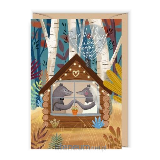 Otwierana kartka, pusta w środku, wykonana na papierze (z certyfikatem EFC) z wyraźnie widoczną fakturą. W zestawie ekologiczna koperta.