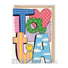 Otwierana kartka, pusta w środku, wykonana na papierze (z certyfikatem EFC) z wyraźnie widoczną fakturą. W zestawie ekologiczna koperta.