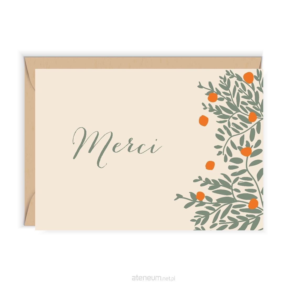 Otwierana kartka, pusta w środku, wykonana na papierze (z certyfikatem EFC) z wyraźnie widoczną fakturą. W zestawie ekologiczna koperta.