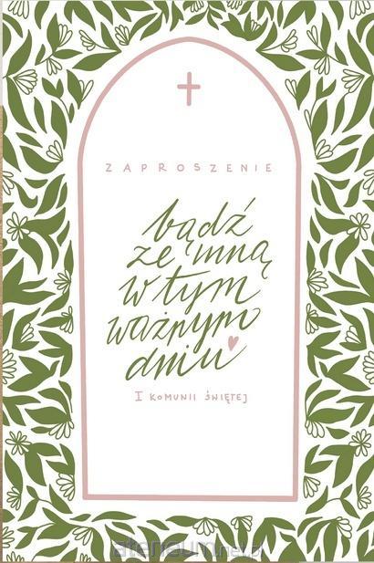 Minimalistyczne i delikatne zaproszenie na Komunię Świętą do własnoręcznego uzupełnienia. Karta zaproszenia ma wymiar 105x148 cm po złożeniu. Drukowana jest na papierze o gramaturze 300. Zaproszenie do własnoręcznego uzupełnienia. W zestawie ekologiczna koperta C6.