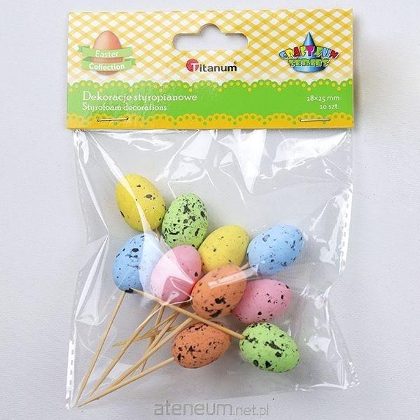 Dekoracje styropianowe jajka na piku przepiórcze 18x25mm żółte, pomarańczowe, zielone, niebieskie, różowe długość piku ok. 45mm 10szt.