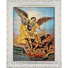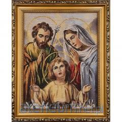 Bogate kolory i eleganckie złote nici podkreślające sakralny charakter sceny.