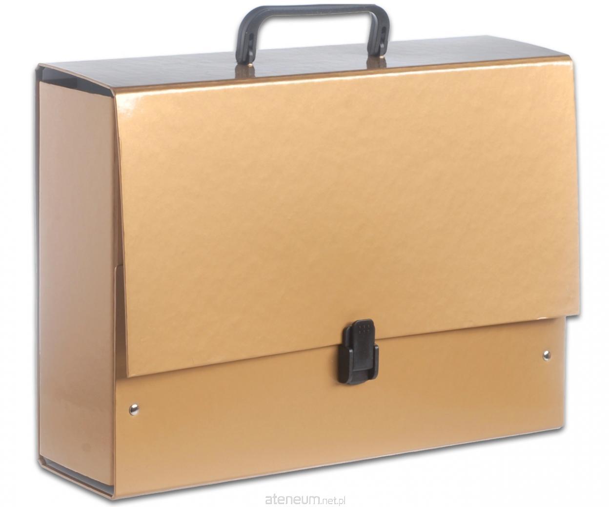Wykonana z tektury 1,7mm, nitowane boki z okleinowanymi krawędziami. Okleina w jednolitym kolorze uszlachetniona błyszczącą folią polipropylenową,Wymiary w cm: 35x26,5x10