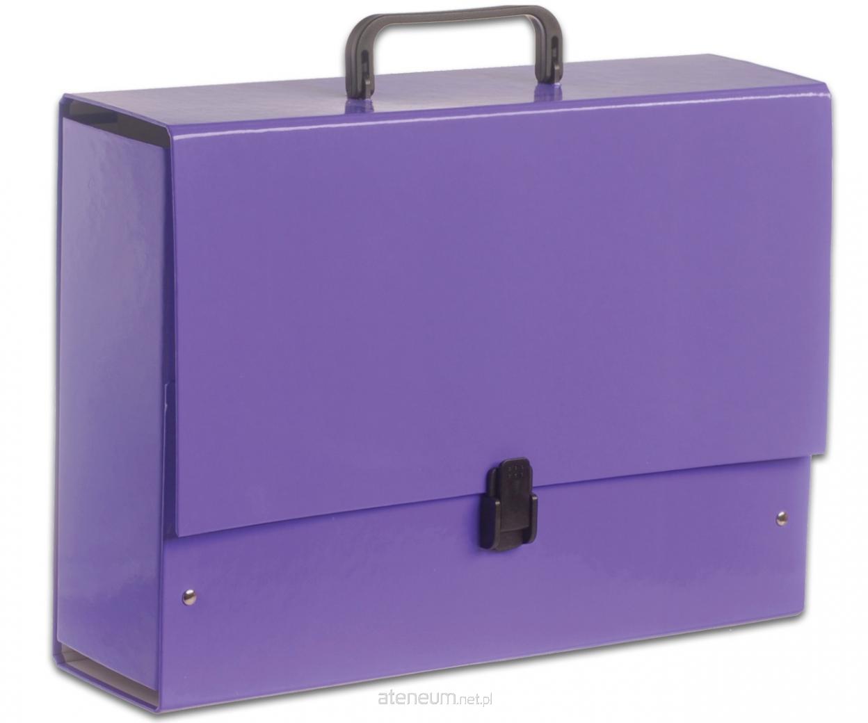 Wykonana z tektury 1,7mm, nitowane boki z okleinowanymi krawędziami. Okleina w jednolitym kolorze uszlachetniona błyszczącą folią polipropylenową,Wymiary w cm: 35x26,5x10