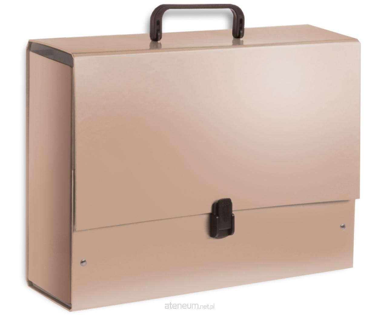 Wykonana z tektury 1,7mm, nitowane boki z okleinowanymi krawędziami. Okleina w jednolitym kolorze uszlachetniona błyszczącą folią polipropylenową,Wymiary w cm: 35x26,5x10