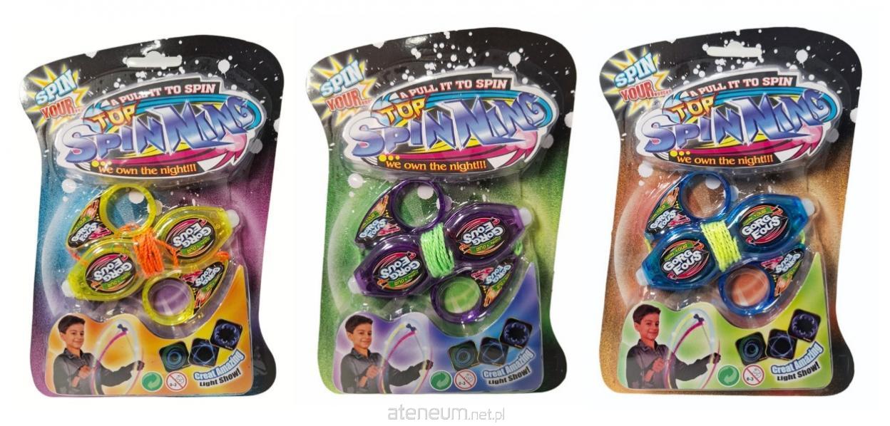 Zabawka zręcznościowa typu spinning to pełna efektów zabawka, która zachwyci każde dziecko. Za pomocą dołączonych pierścieni dziecko wprawia zabawkę w ruch, a obrotowe elementy zaczynają świecić, tworząc kolorowy wir świateł. Zabawka działa na baterie typu AG3. Baterie znajdują się w zabawce. Produkt występuje w kilku wersjach kolorystycznych, wybierany losowo. Cena dotyczy jednej sztuki. Zabawka zapakowana w kartonową podstawkę z przezroczystym kloszem.