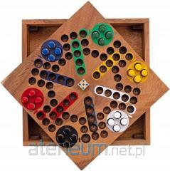 Zestaw Domino Mexican Train Double 9 zawiera 55 kamieni z kolorowymi oczkami i jest dostarczany w drewnianym pudełku z przesuwaną pokrywką. Liczba na klockach sięga do 9. Zestaw zawiera również stację i pociągi. Wymiary kamieni: 50 x 25 x 9 mm.