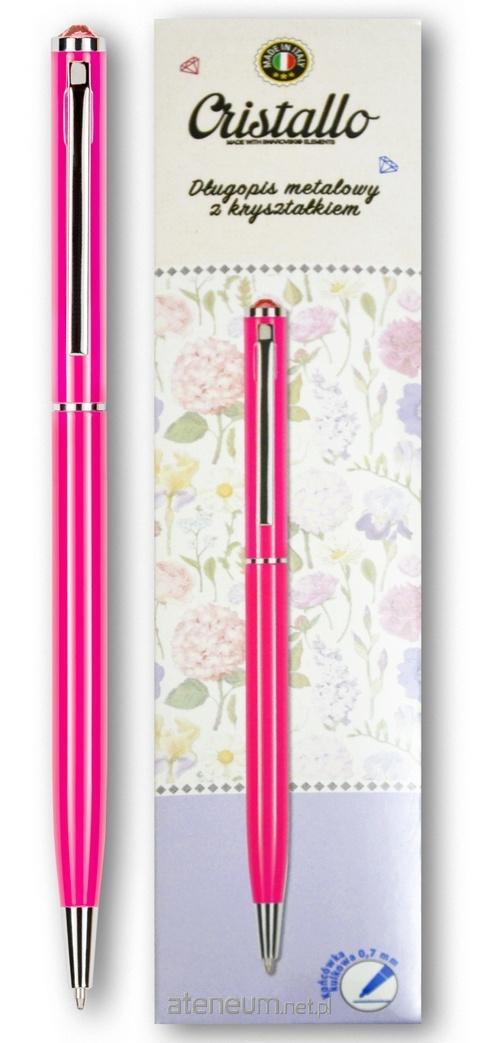 Długopis metalowy z wkończeniem oryginalnym kryształkiem Swarovskiego. Wymienny wkład w kolorze niebieskim typu "Cross". Końcówka kulkowa 0,7 mm.