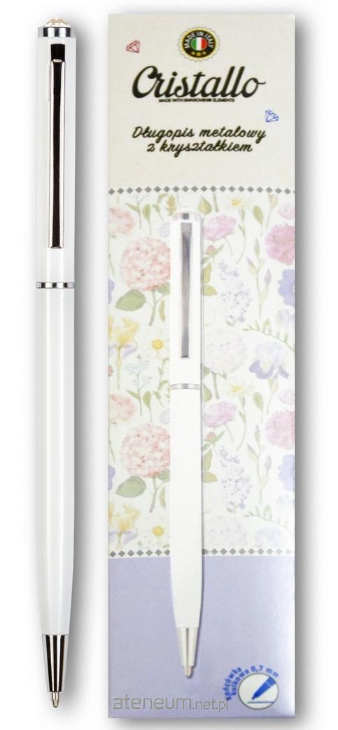 Długopis metalowy z wkończeniem oryginalnym kryształkiem Swarovskiego. Wymienny wkład w kolorze niebieskim typu "Cross". Końcówka kulkowa 0,7 mm.