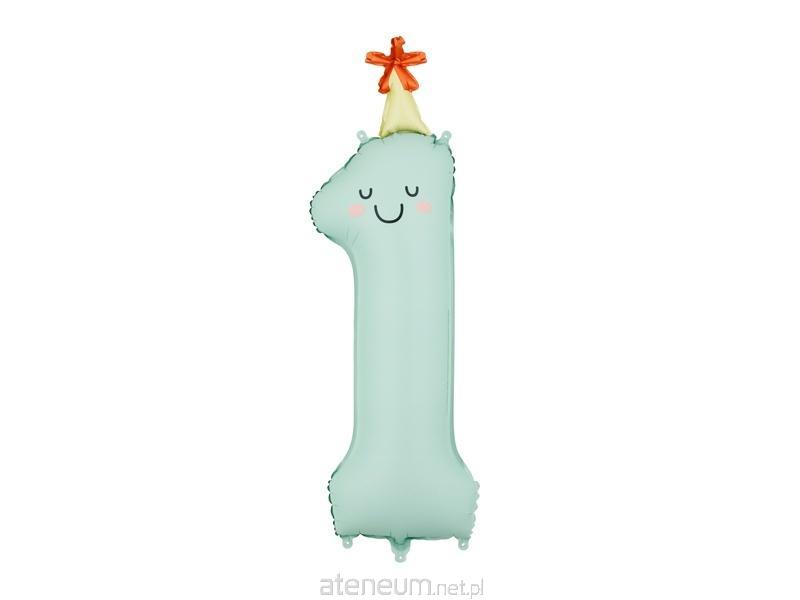 Balon foliowy matowy Cyfra \\'\\'1\\'\\' w kolorze miętowym z kolorową czapeczką. Rozmiar przed napompowaniem ok. 100 cm (39.4\\'\\'), rozmiar po napompowaniu ok. 86 cm (34\\'\\'). Do napompowania powietrzem i helem. Zestaw zawiera słomkę.