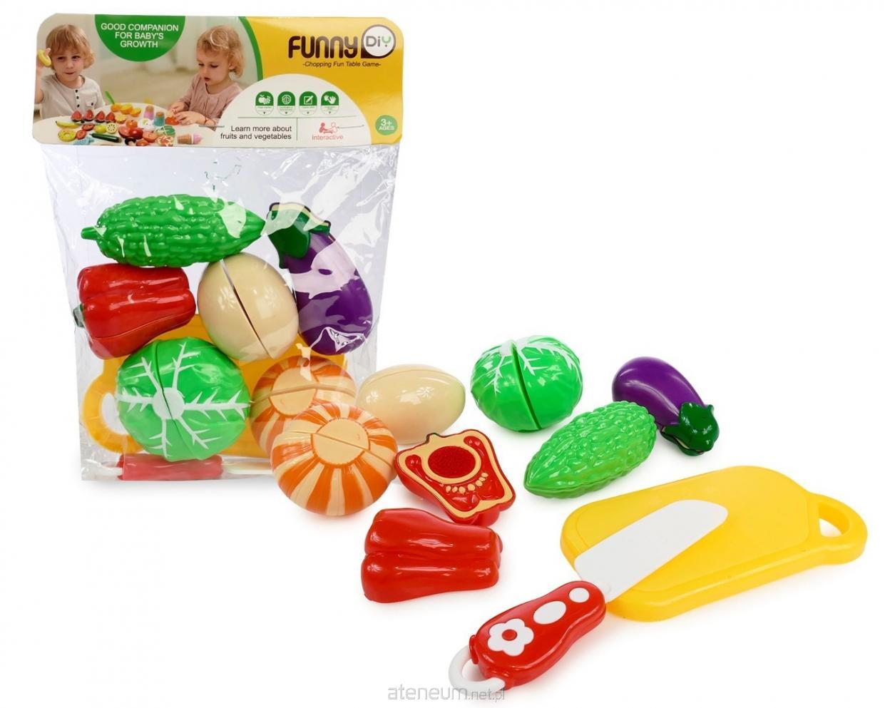 W zestawie: deska do krojenia, nóż, jajko, papryka, kapusta, balsamka, cebula, bakłażan; funkcje: zabawa polega na krojeniu warzyw tak, by rozdzielić rzepy łączące połówki; 3+