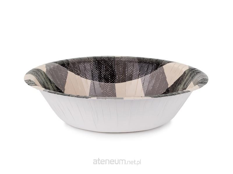 Miseczki papierowe w kratkę, czarno-szaro-kremowe, średnica ok. 17 cm, wysokość ok. 4.5 cm.(1 op. / 6 szt.)
