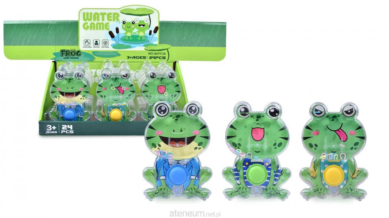 Funkcje: wciśnięcie przycisku powoduje przepływ wody wewnątrz zabawki, dzięki któremu małe kółeczka się unoszą i mogą nadziać się na bolce w środku gry, wym. disp.: 30,5 x 13 x 20,5 cm, 3 wzory, żaba wym. 9 x 12 cm, 3+