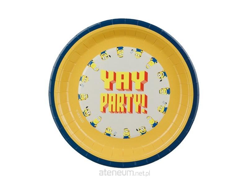 Talerzyki Minionki z napisem Yay Party! Okrągłe o średnicy 23 cm, mix kolorów.(1 op. / 6 szt.)