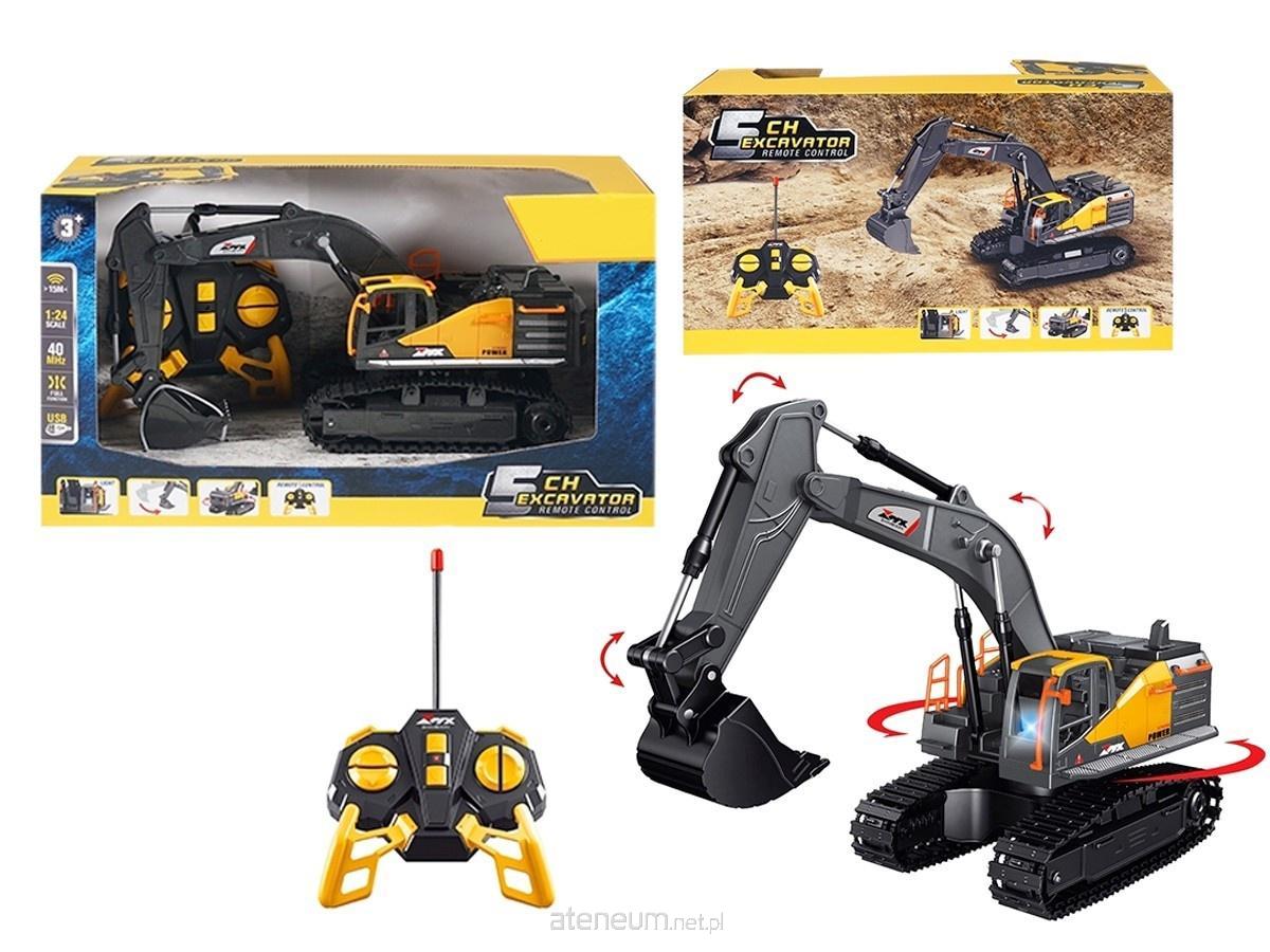 W zestawie: koparka dł. 25 cm, pilot, akumulator, ładowarka, funkcje: pełny zakres jazdy, ruchome gumowe gąsienice, podświetlenie kabiny kierowcy, ruchome ramię i łyżka koarki, wym. Opak. 32 x 18 x 13 cm, baterie: 1 x 3.7V akumulator (koparka) dołączony, 2 x AA 1.5V (pilot) niedołączone, 3+