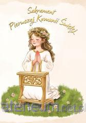 Karnet B6 Komunia Dziewczynka na klęczniku