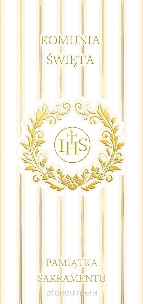 Pudełko Pamiątkowe z okazji Komunii Świętej o wymiarach 245x135x20mm. Zawiera karnet okolicznościowy DL z życzeniami, całość stanowi komplet graficzny z pudełkiem. Produkt wysokiej jakości uszlachetniony złotem.