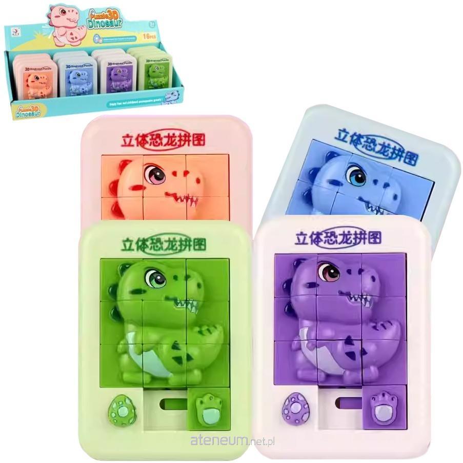 W przeciwieństwie do płaskich układanek, model "Puzzle 3D Dinosaur" posiada wypukłe elementy, które tworzą efektowną figurkę sympatycznego dinozaura. Zadaniem dziecka jest odpowiednie przesuwanie kwadratowych kafelków wewnątrz ramki tak, aby ułożyć kompletny wizerunek małego T-Rexa.