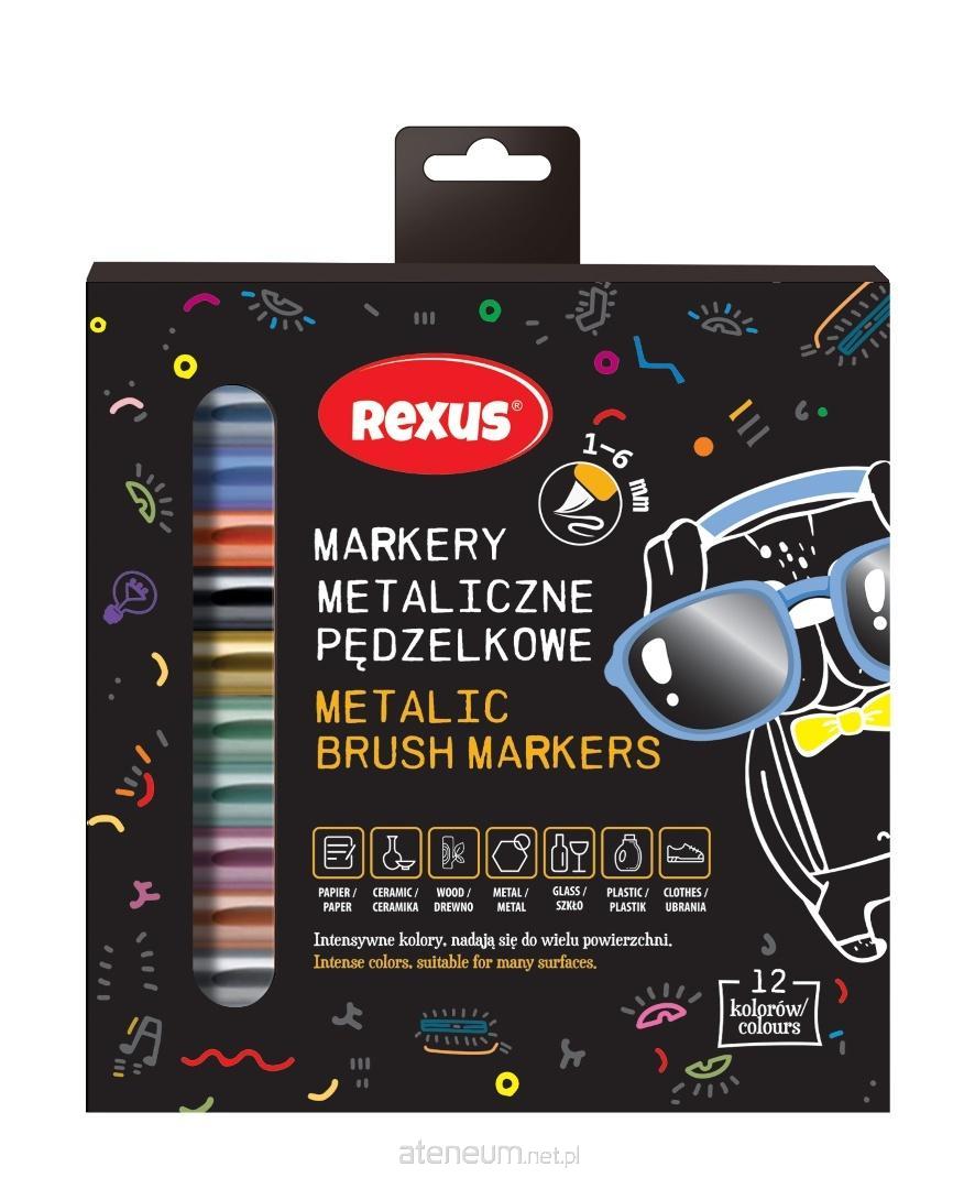 Zestaw 12 markerów metalicznych z elastyczną końcówką pędzelkową do kaligrafii, rysunku i dekoracji. Tusz kryjący, szybkoschnący i odporny na rozmazywanie sprawdza się na papierze, kartonie, drewnie, plastiku, ceramice oraz tkaninach. Kolory dają wyraźny połysk, szczególnie na ciemnych tłach.\nPigment o metalicznym połysku dobrze pokrywa nieprzezroczyste, ciemne powierzchnie. Kolory pozostają nasycone po wyschnięciu, bez utraty blasku. To rozwiązanie do kartek okolicznościowych, zaproszeń czy zdobień albumów. Efekt widoczny z różnych kątów padania światła.\nFormuła tuszu ogranicza ryzyko smug podczas pracy warstwami. Po wyschnięciu napisy są wodoodporne na przypadkowe zachlapania. To praktyczne przy projektach wymagających kilku kolorów i detali. Krótszy czas schnięcia przyspiesza realizację serii ozdobnych napisów.\nZ tym zestawem ozdobisz papier, karton, drewno, plastik, ceramikę i tkaniny. Sprawdzi się w scrapbookingu, personalizacji upominków oraz dekoracjach DIY. Na bardzo gładkich powierzchniach warto je odtłuścić przed rysowaniem. W przypadku tkanin trwałość zależy od materiału i sposobu prania.
