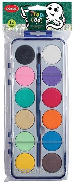 Łatwo zmywalne farby akwarelowe o bardzo dużej wydajności. Sprawdzają się podczas nauki malowania. Mogą być idealnym prezentem dla małego artysty. Dzięki wysokiej odporności na światło, kolory nie wyblakną a prace plastyczne zachowają swoje intensywne barwy przez długi czas.\nSkładają się z wysokiej jakości drobno roztartych pigmentów, połączonych rozpuszczalnym w wodzie spoiwem. Oprócz pigmentów i spoiw akwarele szkolne zawierają pewne ilości wypełniaczy, które sprawiają, że farba wysychając matowieje.\nDzięki temu nakładając farbę grubiej można malować technikami zbliżonymi do gwaszu, a w większych rozcieńczeniach technikami charakterystycznymi dla akwareli. Akwarele można wykorzystywać w technikach łączenia z farbami temperowymi, plakatowymi i kredkami woskowymi.\nAkwarele przeznaczone są głównie dla dzieci i młodzieży szkolnej rozpoczynającej edukację plastyczną. Dzięki swej postaci mogą być łatwo przenoszone np. w uczniowskich tornistrach oraz przechowywane przez długi czas bez obawy zmiany właściwości. Farby akwarelowe są tzw. farbami suchymi, nie wylewają się i łatwo je zmyć, dlatego są idealny dla najmłodszych artystów.\nZestaw wysokiej jakości farb akwarelowych w 12 kolorach Całość zamknięta jest w plastikowym pudełku, który wraz z pędzlem tworzy gotowy zestaw do malowania i ułatwia przechowywanie.