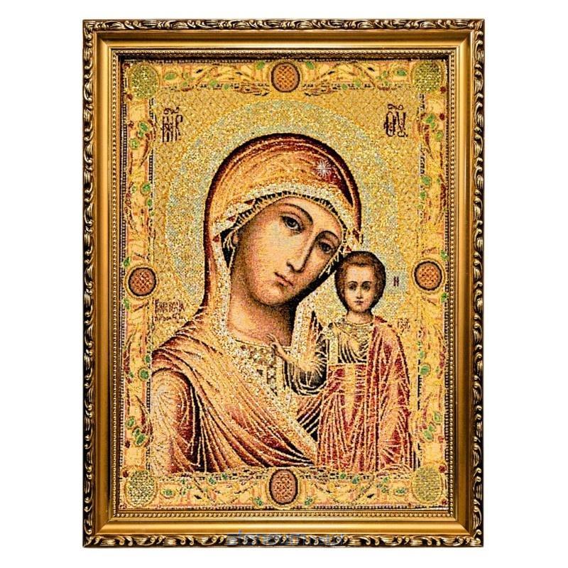 Haftowany Obraz Matka Boża Kazańska w Złotej Ramie - Złote Nici, 42x32 cm