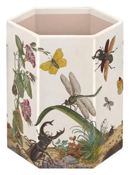 Sześciokątna forma wygląda nowocześnie i geometrycznie, a do tego całość jest składana - w kilka chwil płasko się składa i chowa, zajmując prawie zero miejsca. Wykonany z solidnej tektury, lekki i przyjemny w dotyku.