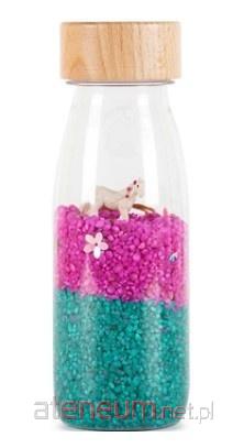 Butelki sensoryczne od Petit Boum to kolorowy świat zamknięty w niewielkiej, przystępnej dla dziecka formie. Bawią, uczą i stymulują wyobraźnię! Pozwól swojemu dziecku poruszać, potrząsać i manipulować butelką, aby odkrywać kolory i figurki tematyczne zamknięte w butelce. Różnorodna zawartość butelek pozwala odkrywać nowe, ciekawe dźwięki charakterystyczne dla ukrytych w butelce elementów. Zabawa butelką od Petit Boum rozwija zmysły i wyobraźnię dziecka! Czy rozpoznasz butelki po ich dźwiękach? Czy znajdziesz w środku jednorożca? :)