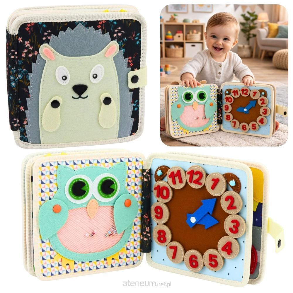 Motyw sympatycznego jeżyka na okładce przyciąga uwagę dziecka i zachęca do rozpoczęcia zabawy. Wewnątrz znajdują się ciekawe zadania sensoryczne, między innymi elementy do dopasowywania oraz zegar edukacyjny, który pomaga w nauce godzin w prosty i przystępny sposób. Dzięki temu dziecko może rozwijać umiejętności poznawcze poprzez zabawę.