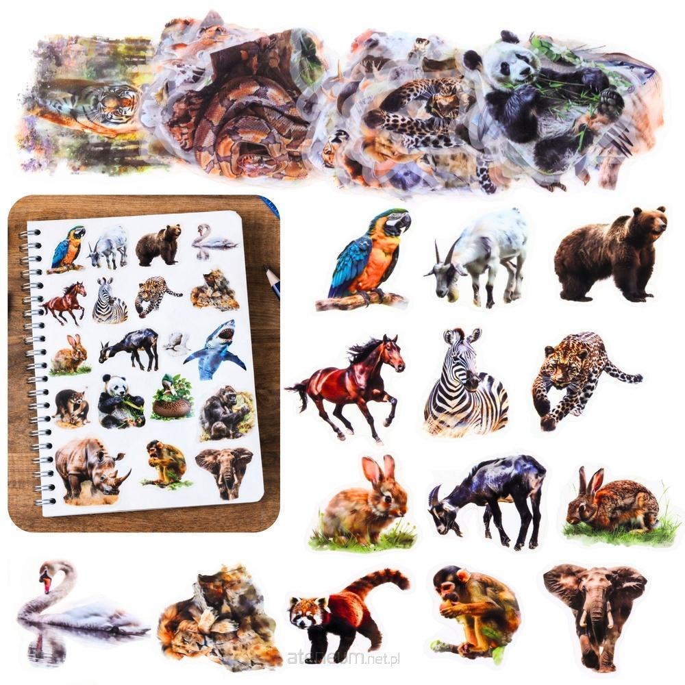 ZESTAW 50 SZTUK NAKLEJEK DZIKIE ZWIERZĘTA ŚLISKIE PRZEŹROCZYSTE 6 CM