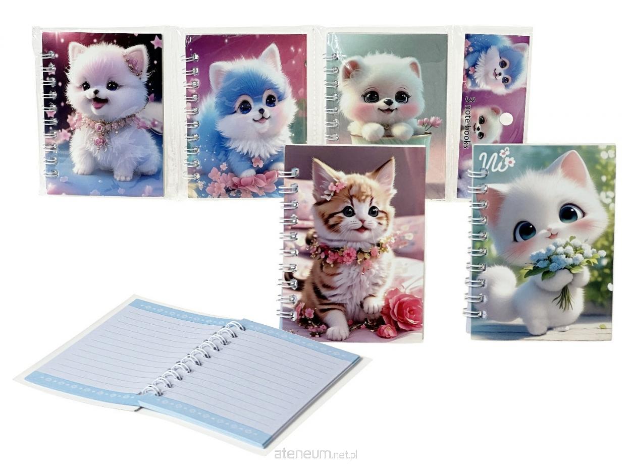 zestaw 3 notesików z kotami, 10,5x7,5cm; 30,5x11cm, PVC