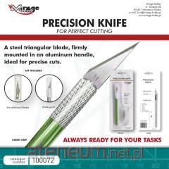 Precyzyjny nożyk modelarski. Stalowe trójkątne ostrze, mocno osadzone w aluminiowej rękojeści, idealne do precyzyjnych cięć. W zestawie opakowanie z dodatkowymi 5 ostrzami.