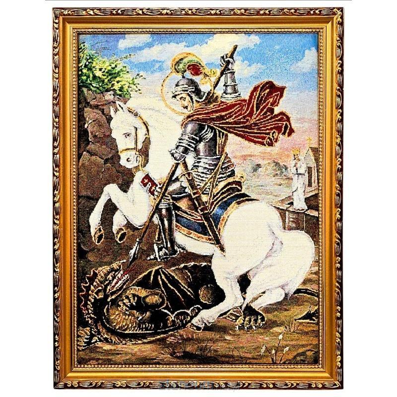 Haftowany Obraz Św. Jerzego w Złotej Ramie - Zwycięzca Smoka, 42x32 cm