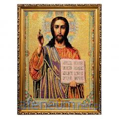 Podziwiaj wyjątkowe piękno i głębię wiary w tym okazałym, haftowanym obrazie Jezusa Miłosiernego. Przedstawienie ikonicznego wizerunku "Jezu Ufam Tobie", oparte na wizji św. Faustyny Kowalskiej, zachwyca bogactwem kolorów i subtelnym blaskiem złotych nici, które nadają postaci Chrystusa niepowtarzalny, pełen chwały charakter. Wyjątkowym elementem tego dzieła jest bogato zdobione tło w głębokim odcieniu niebieskiego, które nadaje całości artystycznej głębi i wyróżnia ten wizerunek na tle tradycyjnych przedstawień.