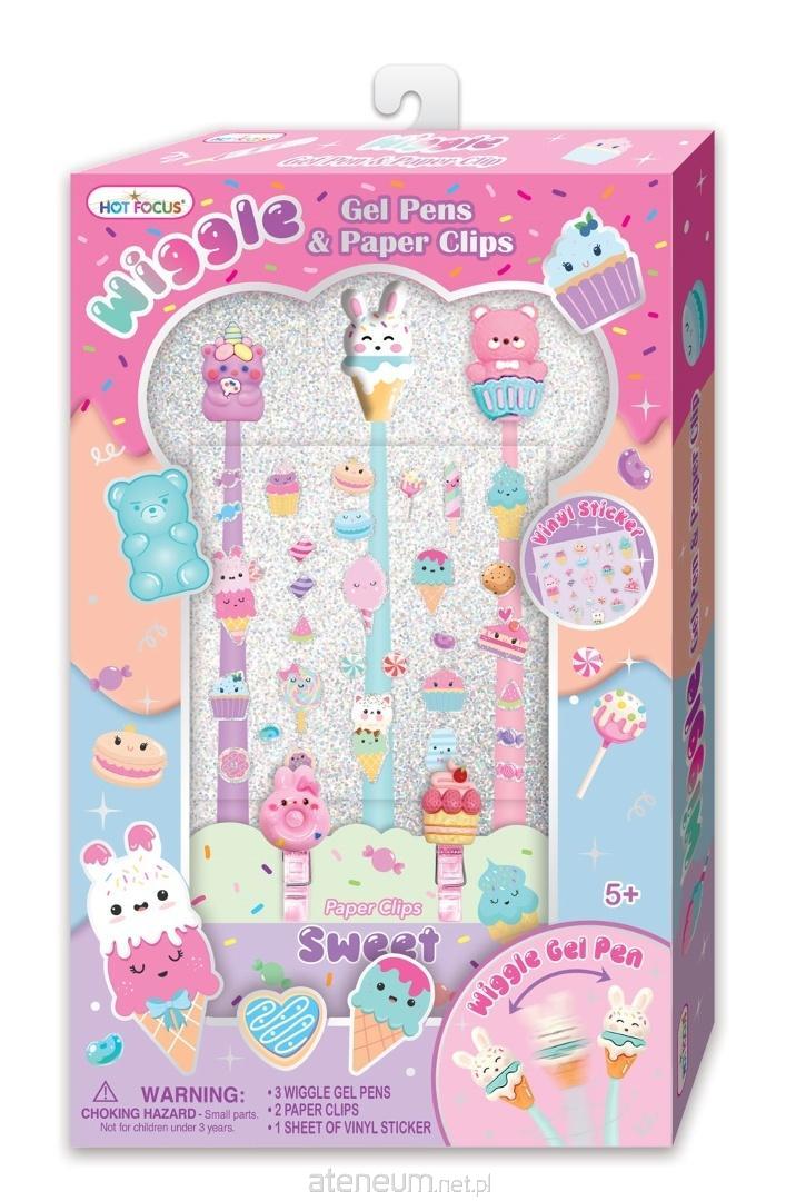 W zestawie znajdują się 3 giętkie silikonowe długopisy żelowe, które będą się wyginać przy pisaniu i potrząsaniu. Każdy ma inną ozdobną końcówkę, która dostarczy dodatkowej frajdy podczas pisania! Dodatkowo 2 klipsy z ozdobnymi nakładkami. Wiek: 5+