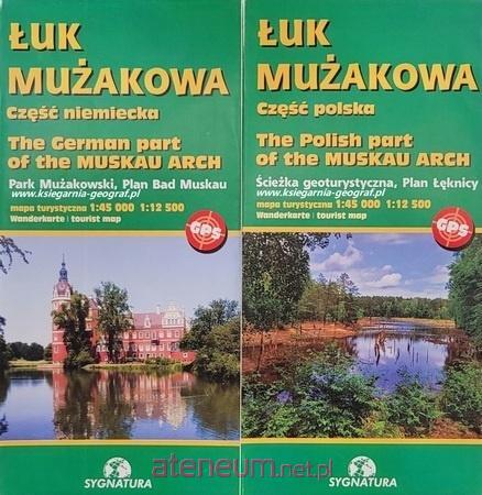 Zestaw dwóch map turystycznych polskiej i niemieckiej części Łuku Mużakowa w skali 1:45 000 wydawnictwa Sygnatura.