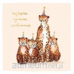 Karnet urodzinowy z życzeniami w środku, złocenie, naklejane elementy oraz naklejki z cyframi do personalizacji wieku