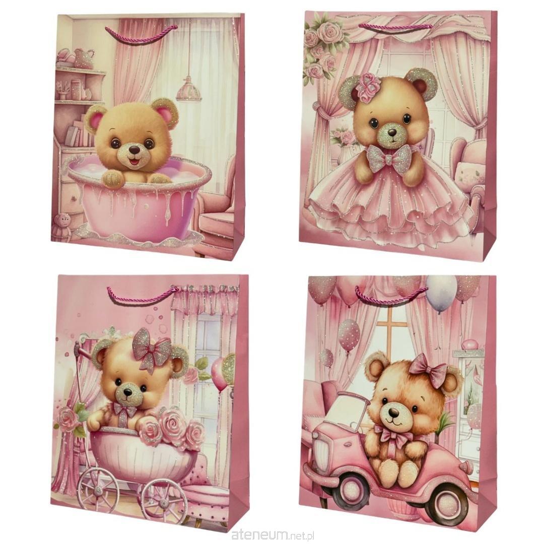 Torebka prezentowa dziecięca M Miś dziewczynka mix
