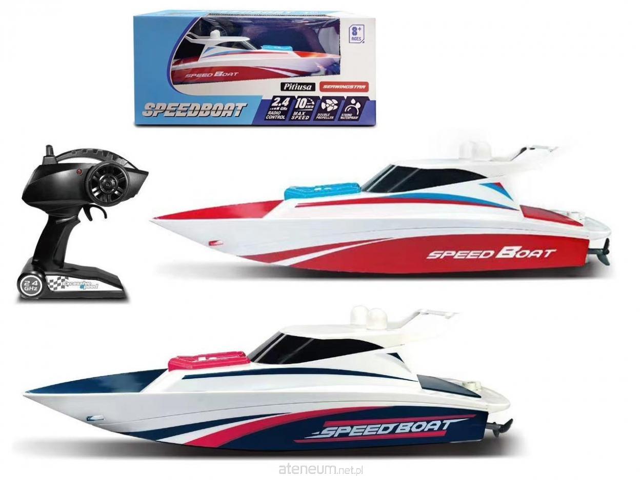 Zdalnie sterowana łódź motorowa Speedboat to doskonała propozycja dla miłośników wodnych wyścigów. Opływowy kadłub zapewnia dużą prędkość oraz stabilność podczas pływania, a sterowanie w technologii 2.4 GHz gwarantuje płynną jazdę bez zakłóceń. Model świetnie sprawdzi się w basenie, na jeziorze czy spokojnym akwenie wodnym. Nowoczesny design i dynamiczna kolorystyka nadają łodzi sportowego charakteru. Wygodny kontroler umożliwia precyzyjne manewrowanie - skręcanie oraz jazdę do przodu i do tyłu. Cechy produktu: sterowanie radiowe 2.4 GHz; dobra prędkość i stabilność na wodzie; precyzyjny kontroler; wiek: 8+; zasilanie akumulatorowe (łódź). Wymiary łodzi: długość: ok. 32-34 cm; Wymiary opakowania: długość: ok. 34 cm; wysokość: ok. 15 cm; szerokość: ok. 12 cm. Świetny pomysł na prezent dla dzieci i dorosłych, którzy lubią aktywną zabawę na wodzie!