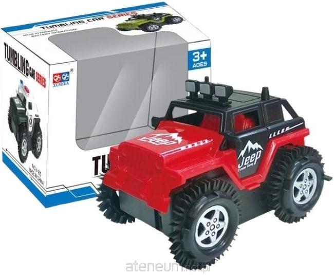 Pojazd wyróżnia się solidną konstrukcją, która dzielnie znosi codzienne przygody i bliskie spotkania z meblami. Wyrazista kolorystyka i detale nawiązujące do kultowych terenówek sprawiają, że zabawka prezentuje się świetnie zarówno podczas jazdy, jak i na półce. Mechanizm zasilany bateriami zapewnia stałą moc niezbędną do wykonywania trików, pozwalając dziecku cieszyć się dynamiką ruchu bez konieczności ręcznego popychania auta. To zabawka, która stymuluje koordynację, uczy przewidywania i przede wszystkim dostarcza mnóstwo czystej, dziecięcej radości z każdego udanego koziołka.