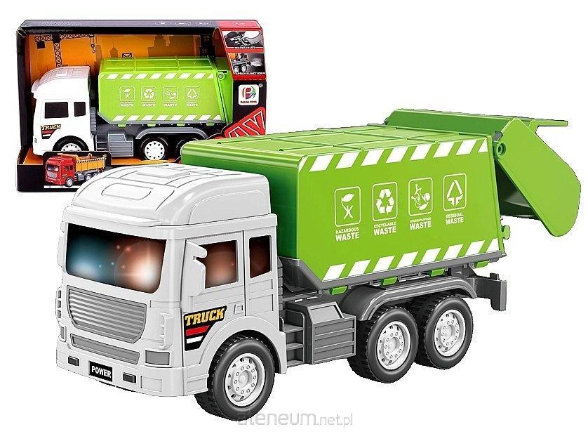 auto śmieciarka, światło, dźwięk, otwierane drzwi, funkcja pary z wydechu, 19,5x9x8cm; 22,6x14x9cm, W/B