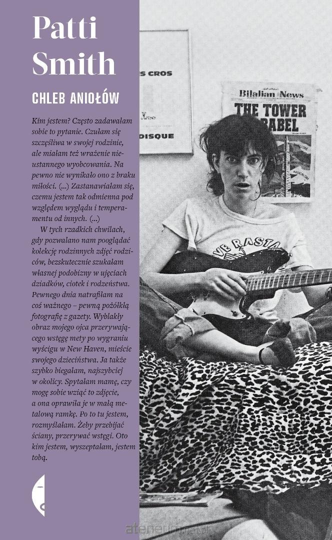 Chleb aniołów to wyrafinowana autobiograficzna opowieść jednej z najważniejszych artystek XX i XXI wieku. Smith nie zaleca się do czytelnika, ale z odwagą i charakterystyczną dla siebie wrażliwością się przed nim odsłania. Jej nowa książka jest także listem miłosnym do czasem okrutnego, a czasem pięknego świata.