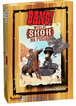 Pociąg zmierza do miasta, a bandyci chcą położyć swoje brudne łapska na jego cennym ładunku. Jednak Szeryf i jego zastępcy zrobią wszystko,aby pociąg szczęśliwie dotarł do celu. Ograbisz pociąg wraz ze swoimi towarzyszami czy też będzieszgo chronił za wszelką cenę? Wszyscy na pokład! Zawartość: 16 kart wagonów, 1 karta lokomotywy, 14 kart stacji, 8 postaci, 16 kart do gry, instrukcja. Uwaga! To nie jestsamodzielna gra. Do zabawy wymagane jest posiadanie podstawowej wersji gry BANG!
