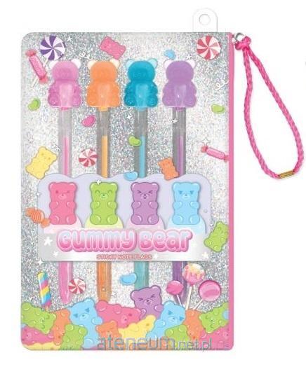 4 żelowe długopisy zapachowe z zabawnymi ozdobnymi końcówkami zapakowane w przezroczystą saszetkę zapinaną na zamek, dodatkowo sznureczek do wygodnego przenoszenia. Zestaw zawiera również klejące mini-karteczki w 4 różnych kształtach oraz arkusz naklejek. Wiek: 5+