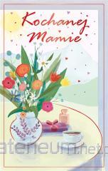 Elegancka kartka na Dzień Mamy z uroczym motywem koszyka wypełnionego niezapominajkami, utrzymana w delikatnej, subtelnej kolorystyce. Każdy egzemplarz jest ręcznie malowany, dzięki czemu stanowi unikatowe, małe dzieło sztuki. Kartka została wykonana z wysokiej jakości papieru, z dbałością o każdy detal. Wnętrze pozostaje puste, co pozwala na dodanie własnych życzeń i nadanie jej osobistego charakteru. W zestawie znajduje się dopasowana koperta. Produkt wykonany w Polsce.