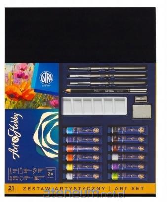 Zestaw artystyczny ART&HOBBY 2 - 21 el. akryle 1212 ml, 3 pędzle, ołówek, gumka, temp. paleta + płótno białe i czarne