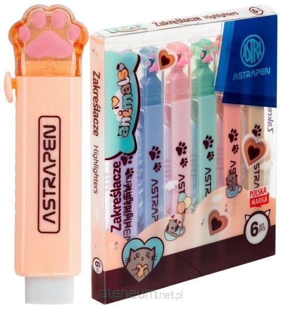 Zakreślacze z łapkami Amimals 6 kol ASTRA